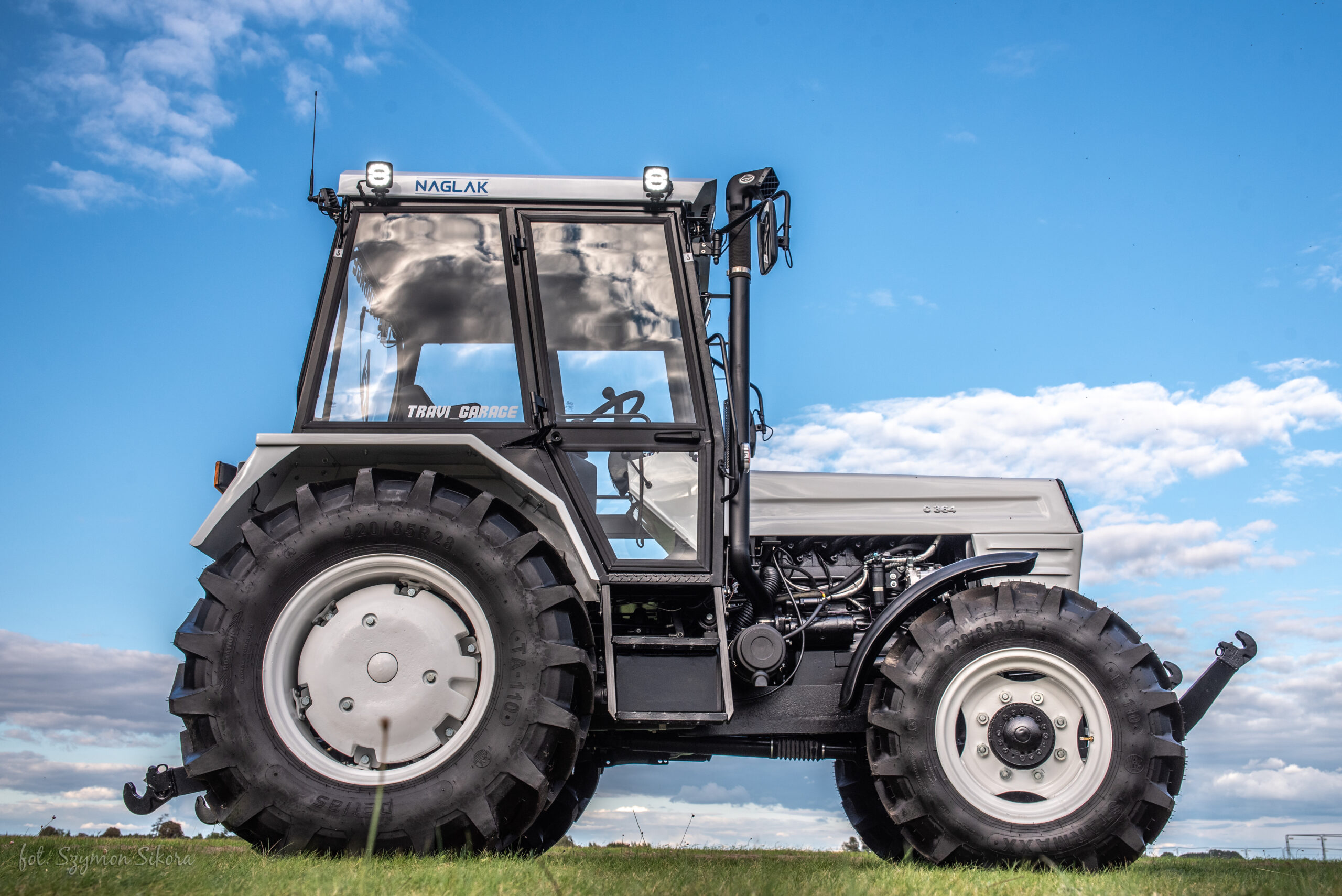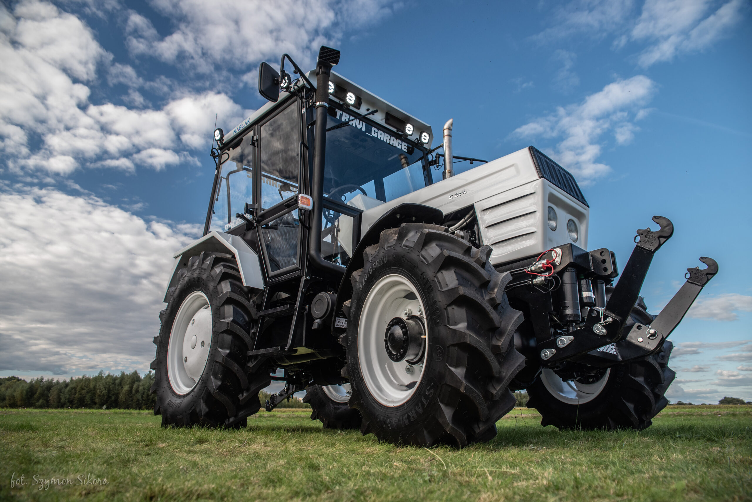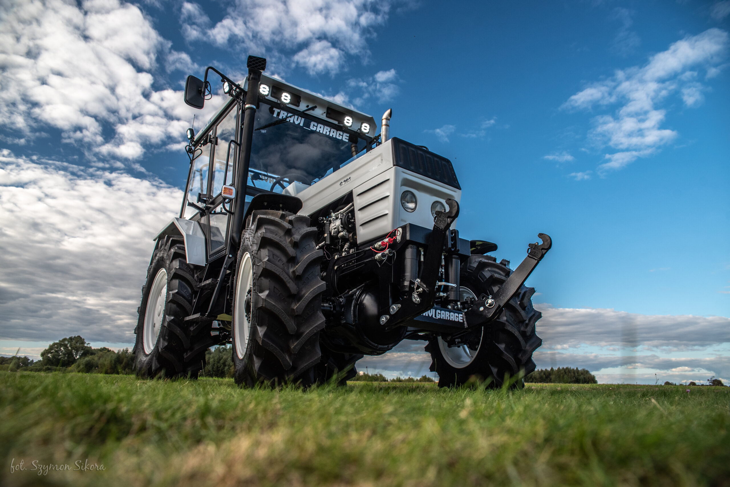 Zdecydowanie największy i najbardziej zaawansowany projekt ekipy TRAVI_GARAGE. BIZON Z056 Super z 1981 roku zakupiony w grudniu 2023 roku od razu został poddany rozbiórce i kompletnej przebudowie. Od samego początku projekt zakładał najnowocześniejsze rozwiązania techniczne. Bracia chcieli zrobić najlepszego BIZONA Z056 super na świecie. Przeszczepili do niego kompletny napęd hydrostatyczny 4×4 co całkowicie eliminuje największe bolączki tego kombajnu. Zbiornik na ziarno został powiększony o około 400 kg a rura wysypu została przerobiona na rozkładanie hydrauliczne. Kombajn został wyposażony w system wydajnych sit co przełoży się na lepszą wydajność. Zastosowana została również długa gardziel z BIZONA REKORDA MILENIUM i nowoczesny heder marki NEW HOLLAND. Podest oraz kabina wykonana została na indywidualne zamówienie przez firmę NAGLAK. Te wszystkie modyfikacje złożyły się na niesamowitą poprawę widoczności. Cały kombajn został wypiaskowany i wyremontowany do ostatniej śrubki. Bracia pomalowali go na swój charakterystyczny biały kolor z czarnymi dodatkami. Wszystkie elementy systemu omłotu zostały idealnie wyważone. Obudowy łożysk i inne ważne elementy zostały zgalwanizowane. W kabinie kombajnu zostaną zamontowane nowoczesne konsole oraz joystick do jazdy. Kabina wyposażona jest w nowoczesną regulowaną kolumnę kierownicy, automatyczną klimatyzację, nagrzewnicę, lodówkę, radio bluetooth z wyświetlaczem a nawet ekspres do kawy. Operator siedzieć będzie na w pełni regulowanym pneumatycznym fotelu. Do kombajnu będzie zamontowana nawigacja oraz czujnik mapowania plonu. Seryjny silnik SW400 został poddany rewizji i powrotnie zamontowany na kombajnie. Jego kultowe przyprawiające o dreszcze brzmienie od młodzieńczych lat wzbudzało u braci podziw i ogromne emocje. To właśnie dlatego silnik nie został wymieniony lub zmodyfikowany. Bracia od samego początku zakładali, że brzmienie tej bestii musi pozostać oryginalne. Cała reszta zostało przez nich bardziej lub mniej przerobiona i udoskonalona.